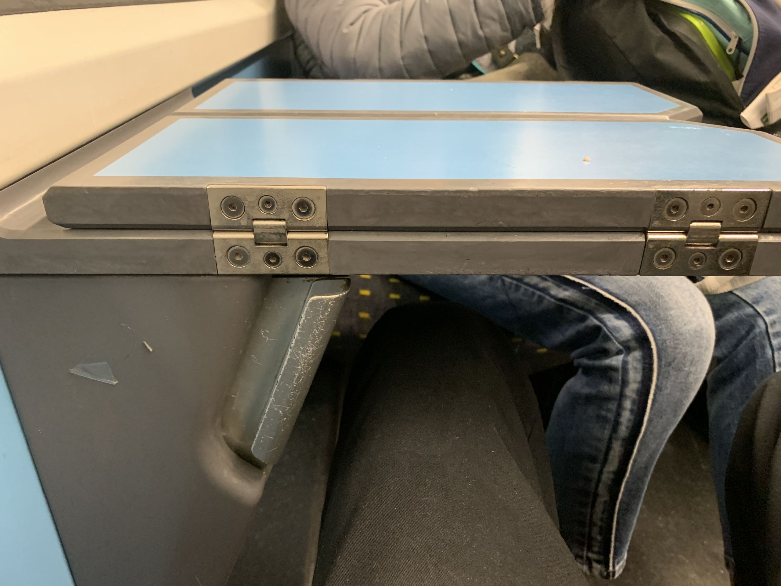 A foldable table in a train: