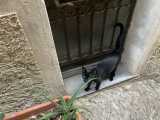 Foregate, door, sticker, graffiti, plaques, and an oopsie